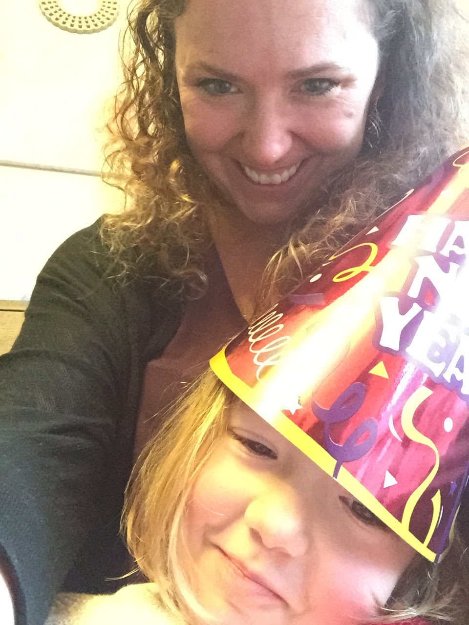 We were planning on going to a toddler NYE party, but ended up at Urgent Care. So we decided to create our own party. We went to party city and got balloons and supplies
